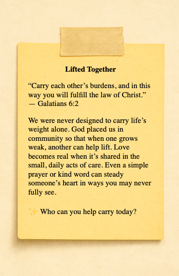 The Bible tells us to “love one another” (John 13:34), to “encourage one another and build each other up” (1 Thessalonians 5:11), and to “bear one another’s burdens” (Galatians 6:2). That is what we want this blog to be—a place where burdens are shared, love is real, and encouragement flows both ways.