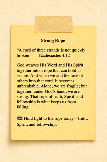 We also want you to understand how this blog works. The weekly blog itself is more of a story—a teaching opportunity that helps us learn, grow, and be encouraged through scripture. The daily sticky-notes, on the other hand, are like reflections or nuggets that spring from the main blog. They’re shorter, quicker encouragements to keep the truth alive in your heart throughout the week. Think of the blog as the deeper teaching moment, and the sticky-notes as gentle reminders of what you received.